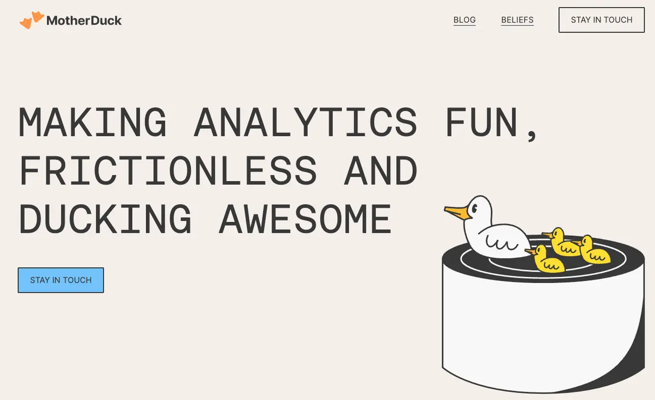 From its slogan "Data Infrastructure and Analytics" and the team background, I guessed they want to challenge Snowflake and/or Databricks. But how? Building yet another cloud-native warehouse with claimed performance/price benefits is meh. And MotherDuck is quite unusual name. Why would they choose it?