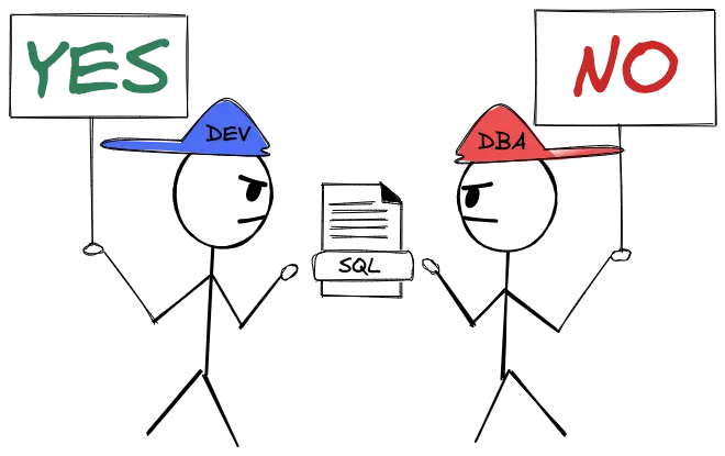 Here’s where SQL review comes in. It is the practice of reviewing DDL and DML statements before applying them to the database. It is one of the most critical aspects of database schema management. In the past, DBAs were in charge of the database. They know the database best, and thus should be the ones reviewing the SQL. This is reasonable, but there is a contradiction: developers (database users) cannot understand the many restrictions and want the most freedom. At the same time, DBAs insist that stability triumphs over everything.