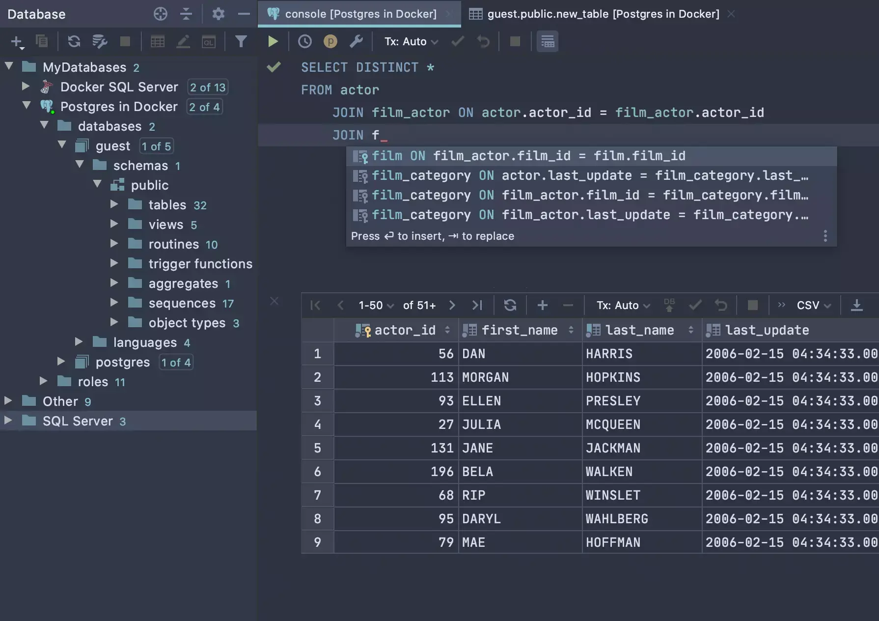 DataGrip is part of the JetBrains ecosystem, offering integration with other JetBrains tools and frameworks and users have a consistent experience with other JetBrains IDEs. So it's perfect if you prefer a dedicated IDE with comprehensive database management features.